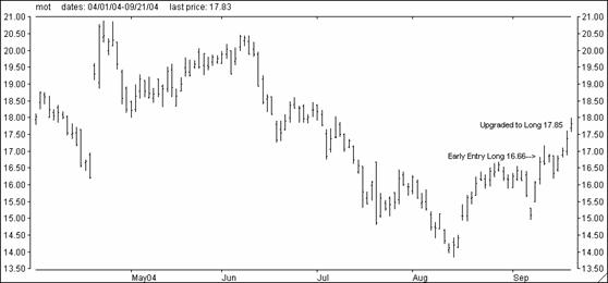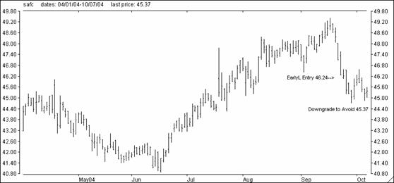 The reason for waiting until the stock closes through the Entry Price is because the Buy and Sell Stops are usually good short-term resistance and support areas. When a stock violates these levels, it is a good indication that the price is likely to continue moving in that direction.